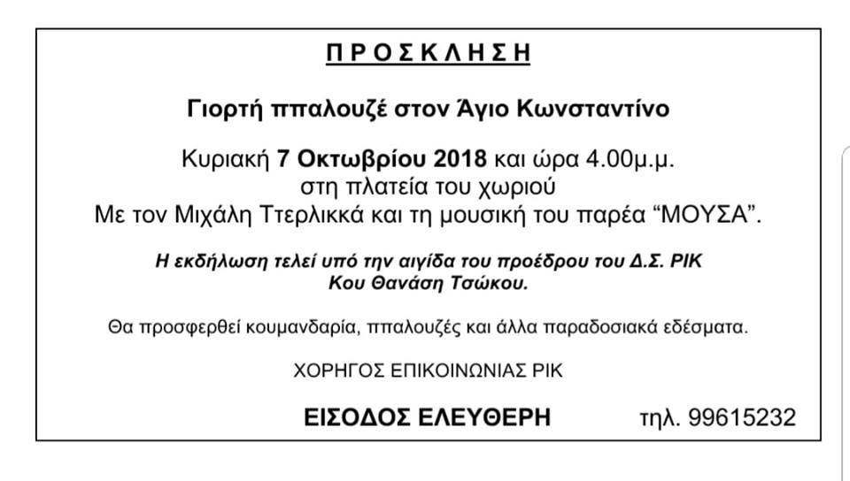 Γιορτή παλουζέ στον Άγιο Κωνσταντίνο (7/10/2018)