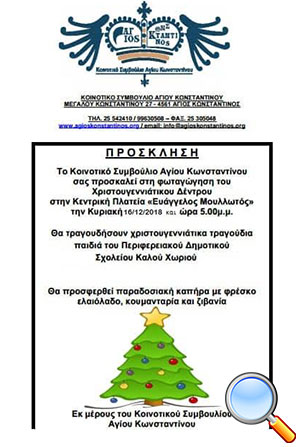 Χριστουγεννιάτικη Εκδήλωση στον Άγιο Κωνσταντίνο 16/12/2018